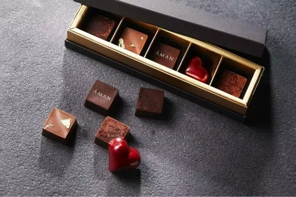 アマン東京のオリジナルバレンタインチョコレートが、2021年2月14日(日)まで33階「ザ・ラウンジ by アマン」で、2月8日(月)から2月14日(日)まで大手町タワー地下2階「OOTEMORI」の期間限定ストアで販売される。