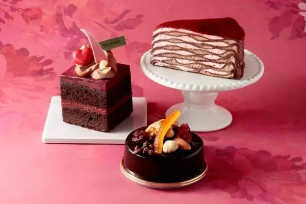 「クラシックショコラ フランボワーズ」は、しっとりとしたショコラ生地になめらかなフランボワーズガナッシュを合わせたケーキだ。ショコラ生地とフランボワーズガナッシュを交互に重ね、トップにはルビーチョコレートや赤いハートのチョコレートなどを飾り付けている。