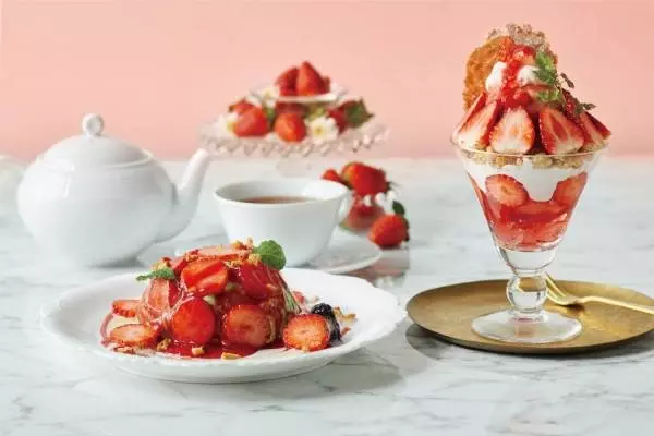 アフタヌーンティー・ティールーム“苺づくし”の限定スイーツ、あまおうパフェ&もちもちミルクレープ