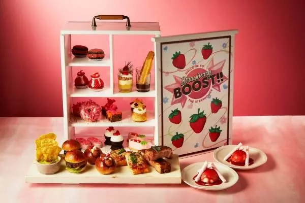 「ストロベリー・アフタヌーンティー・ブースト」は、11種類のアメリカンスイーツと5種類の食事メニューを楽しめる、ボリューム満点のアフタヌーンティー。今年は、ホテル内で開催している苺フェア「ストロベリー・センセーション 2021」の一環として、苺をテーマにしたスイーツを用意する。