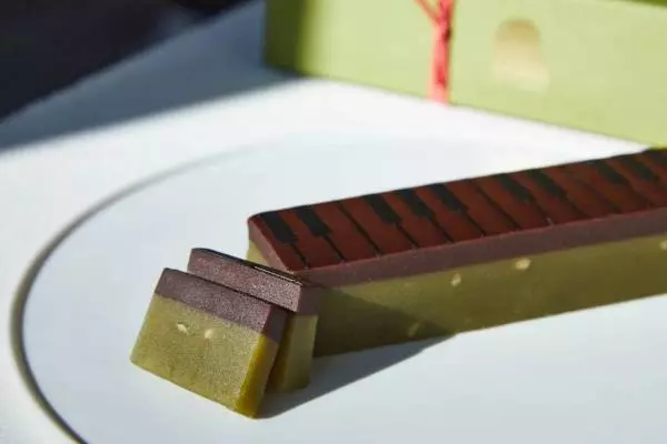 “ピアノモチーフ”の和菓子「ジャズ羊羹」新作ピスタチオショコラ、高級ピスタチオを贅沢に使用
