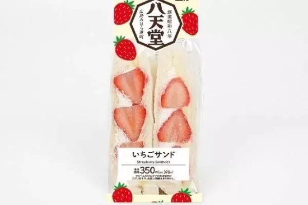 昭和8年創業“くりーむパン”で有名な八天堂が、ミニストップと再びコラボレーション。第1弾「フルーツサンド」、第2弾のスイーツに続き、最新作は旬のいちごを使った「いちごサンド」を展開する。