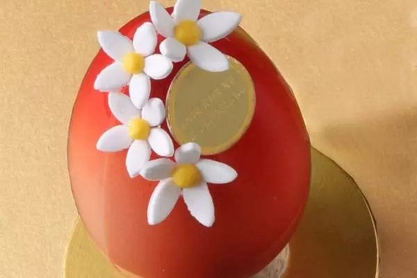ジョエル・ロブションの「イースターエッグ」は、イエス・キリストの復活と、春の訪れを祝う祝祭「イースター」に合わせて発売されるチョコレートスイーツ。赤色に染めた卵型ホワイトチョコレートに、真っ白な花々をデコレーションした。