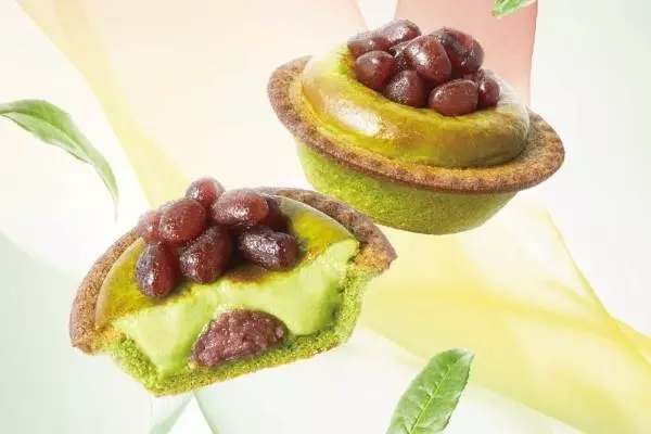 トッピングには、北海道産大納言小豆を贅沢に使用。タルトの中にも、北海道産小豆のこし餡を入れて、本格的な和スイーツに仕上げている。クッキー生地にも宇治抹茶を練り込み、“2度焼き”することでサクサクとした食感を叶えた。