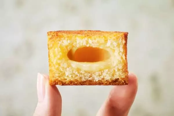 メインとなる「クラフトバターケーキ」は、ジャージー牛乳から作られた濃厚なシングルオリジンバターを使用。ガレット・ブルトンヌと、フィナンシェという食感の異なる2つの生地に、ミルクジャムを挟んだ三層仕立てだ。外はサクッと、中は空洞を開けてふんわりと焼き上げ、食感の軽さも楽しめる。