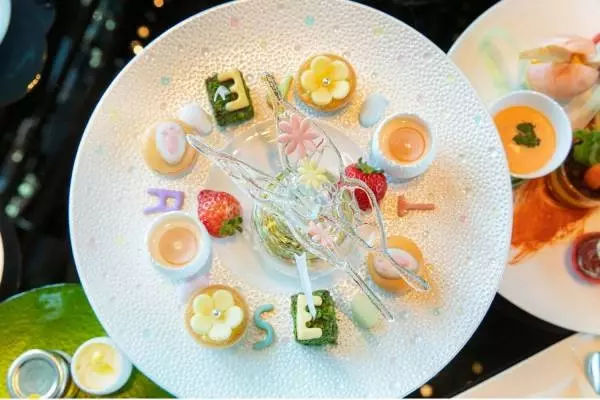 繊細な飴細工の蝶を飾ったアフタヌーンティーを季節ごとに展開しているザ・プリンスギャラリー 東京紀尾井町。春の期間限定で登場する「蝶が舞うギャラリーアフタヌーンティー Easter」は、イースターがテーマ。草花の生き生きとした自然とうさぎのいたずら心を、プレートに表現した。