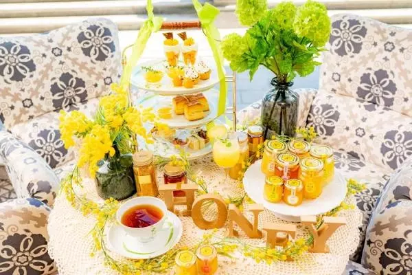 今回で3回目を迎える「ハニーアフタヌーンティー」では、はちみつとともにスイーツやセイボリー、スコーンを味わうアフタヌーンティーセットを提供。はちみつは百花蜜・そよご・はぜ・フレンチハニーサックル・クローバーなど国内外から10種類以上を揃え、好みの3種類を選んで楽しむことができる。