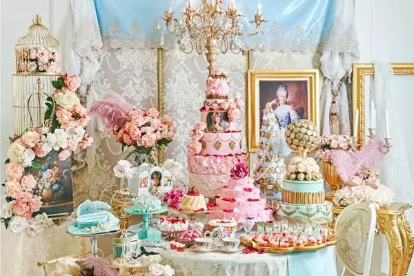 今回開催されるスイーツビュッフェは、マリー・アントワネットをテーマに、ヴェルサイユ宮殿で繰り広げられるティーパーティーをイメージ。マリー・アントワネットのファッションを彷彿させるハットやドレス、ハイヒールなどを飾り付けた華やかな空間で、優雅なひと時を過ごすことができる。