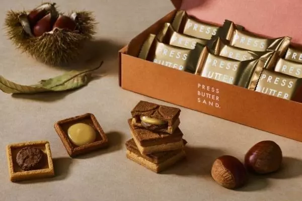 名古屋・栄エリアでは初の常設店舗となる名古屋栄三越店では、中部地方限定フレーバー「バターサンド〈栗〉」を常時販売。渋皮栗ペーストを練り込んだバタークリームを、渋皮栗ペーストとケシの実を加えた栗色の生地とプレーン生地の2種のクッキーでサンドすることで、栗そのものの美味しさを詰め込んだ風味豊かなフレーバーだ。