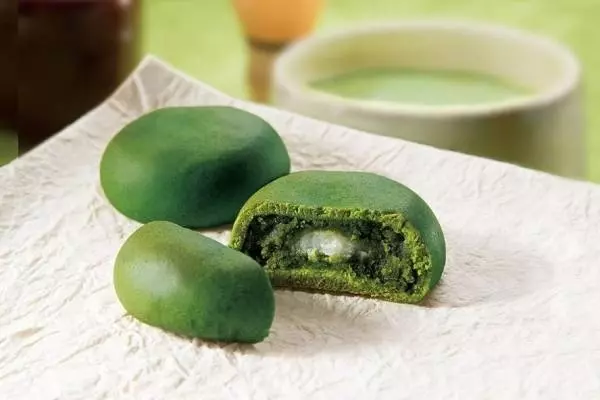 抹茶本来の甘みと色を最大限に引き出すため、石臼挽き宇治抹茶を使用。抹茶フレーバーの生地で、風味豊かな宇治抹茶あんをまるっと包み、中には、ミルキーなミルクあんを閉じ込めた。