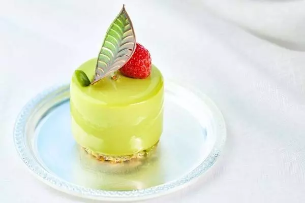 オークラ東京の新作スイーツ、濃厚ピスタチオ×ハイビスカス香る苺ピューレのケーキ