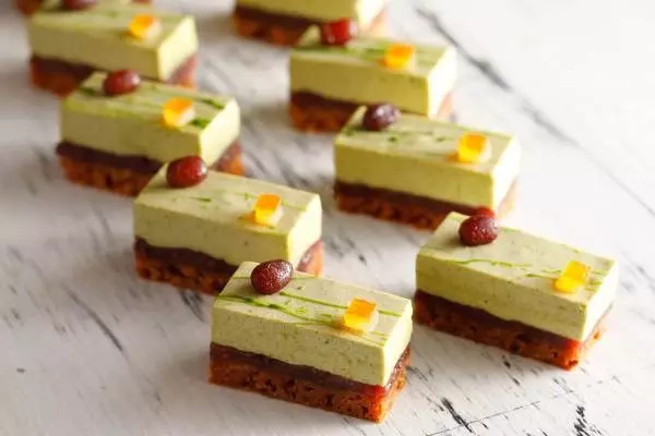注目は、"パティシェ界のピカソ"ことピエール・エルメ(PIERRE HERMÉ)が手掛けるスイーツ「デペイゼ(Dépaysé)」。初登場となるこのスイーツは、ほろ苦い抹茶のババロアとサクサク食感のサブレを合わせたスイーツで、隠し味に酸味のあるライムを効かせた。また、抹茶のババロアの下には、あずきのジュレを忍ばせ、トップにはあずきをトッピング。和テイストが楽しめるスペシャルなメニューとなっている。