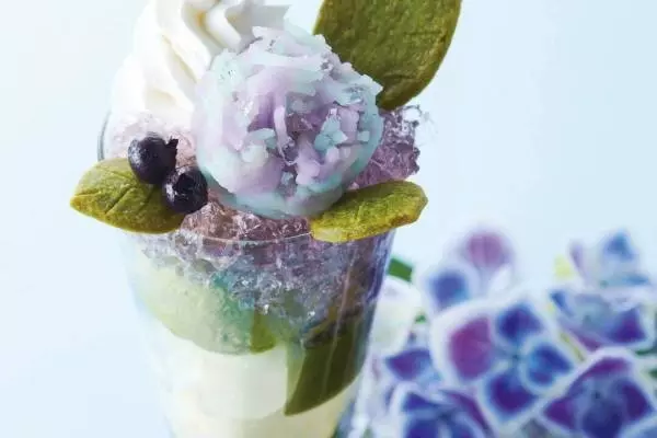 雨露に濡れる紫陽花を表現した「紫陽花パフェ」