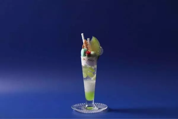また、グラス内には、メロンアイスやマカロンマスカット、ヨーグルトエスプーマなど、バラエティー豊かな味わいを組み合わせた。さらに、ボトム部分にライチゼリーとソーダ水を重ね、さっぱりとした後味で締めくくっている。