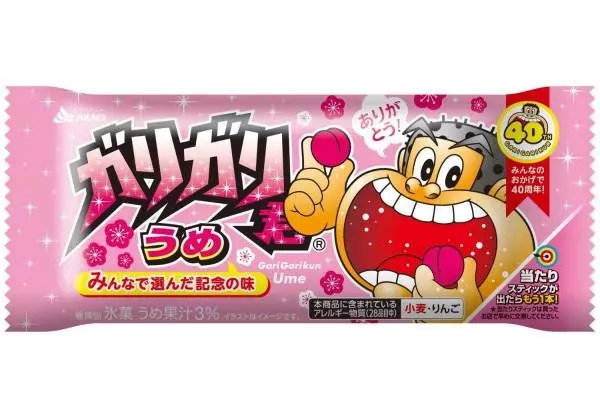 「ガリガリ君うめ」は、ガリガリ君40周年記念商品として、"ガリガリ君の食べたい味"の一般募集から誕生したアイスキャンディー。2位の味に2倍以上の差をつけて1位に輝いた、「ガリガリ君」ファン待望のフレーバーだ。