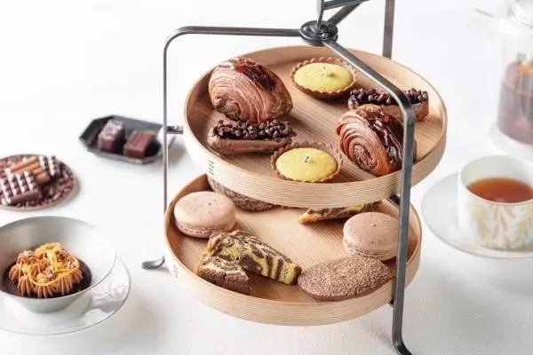 ル・ショコラ・アラン・デュカスのデザートサロン「ル・サロン」で人気のアフタヌーンティーセット「ル・グテ」は、夏仕様にリニューアル。サクサクに焼き上げたパン・オ・ショコラ、カカオニブを散りばめたキャロリーヌ(小さなエクレア)などの新作に加え、香り高いショコラのシャンティクリームと爽やかな柑橘類を組み合わせたデセール、ショコラのガナッシュがたっぷり入ったマカロンなど、約10種のメニューが楽しめる。