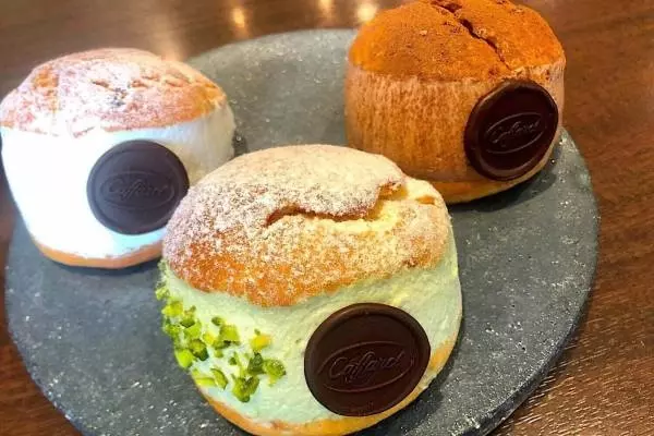 「マリトッツォ」は、丸くて柔らかいブリオッシュ生地に、生クリームを贅沢にサンドしたイタリア・ローマ地方の伝統スイーツ。老舗チョコレートブランド・カファレルでは、チョコレートブランドならではの味わいとして、ジャンドゥーヤのチョコチップを混ぜ込んだ濃厚な味わいの「マリトッツォ」を展開している。