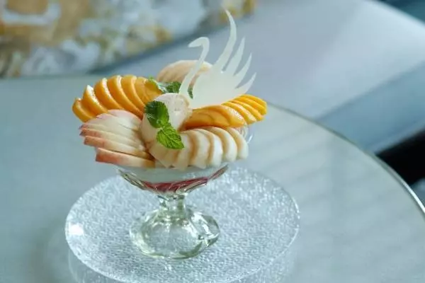 パレスホテル東京の夏限定スイーツ&カクテル、“白鳥”を飾った白桃&黄桃のパフェやスムージー