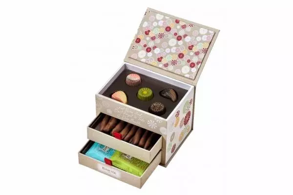 パッケージは風情ある木箱の「コレクション ゴディバ ジャポネ アソートメント」と3段ボックスがスペシャルな雰囲気の「コレクション ゴディバ ジャポネ ティータイムセット」の2種で展開。