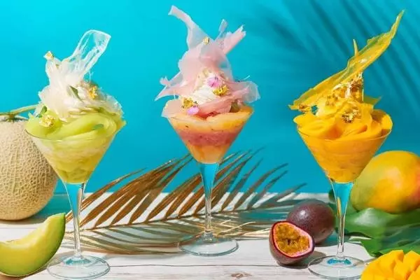 フレーバーは、「メロン&マスカット」「桃」「マンゴー」の全3種類。メロンならではの瑞々しい甘味が堪能出来る「メロン&マスカット」、ベリーの甘酸っぱさとロゼの香りで大人の味わいに仕上げた「ピーチ」、パッションフルーツやココナッツラム「マリブ」で南国気分が楽しめる「マンゴー」と、フレーバーによってそれぞれ異なるフルーツの魅力が楽しめるのもポイントとなっている。