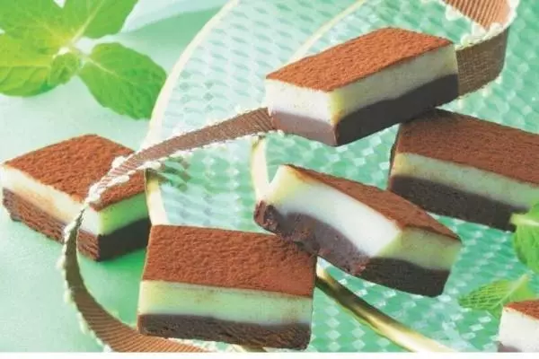 ロイズの新作「生チョコレート[チョコミント]」は、ミントが香る爽やかな2層式生チョコレート。ミントで風味づけしたホワイトチョコレートのガナッシュに、カカオ感を感じられるチョコレートガナッシュを組み合わせ、トップにココアパウダーをまぶして、華やかに仕上げた。口に入れると、まろやかなチョコレートとほろ苦いカカオ、すっきり爽快なミントが交わり、豊かなハーモニーを奏でていく。