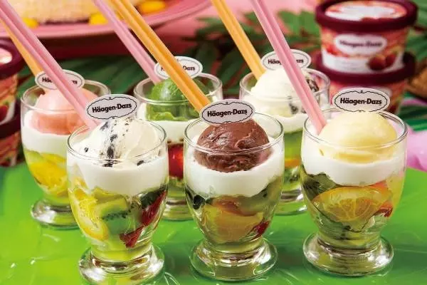 アイスクリームは、ハーゲンダッツで人気の4種類「バニラ」「ストロベリー」「グリーンティー」「スイートチョコレート」をメインに、月替わりでもう1種類をプラスして提供。7月は、マカデミアナッツのカリッとした食感が楽しめる「マカデミアナッツ」フレーバーを用意した。デザートは、ハーゲンダッツアイスクリームと相性が良いアップルタルトや、ハワイをイメージしたパッションバナナムースなどを味わうことができる。