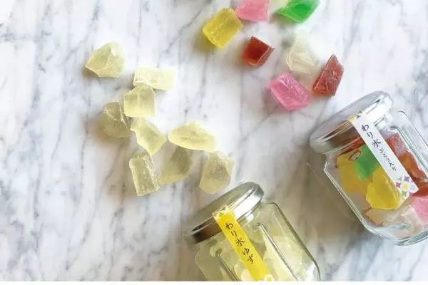 和菓⼦ 村上の「わり氷」の涼やかな見た目に着目した銀座 蔦屋書店は、ちょっと贅沢なスイーツタイムを楽しめる限定菓子セットを用意。定番のカラフルな「わり氷」に、ぶどう果汁が⼊った「ぶどう⼊りわり氷」を組み合わせて、ガラス瓶に詰め込んだ。さらに、キットには⾦沢産のゆずを使った、爽やかなシトラスフレーバーの「⾦沢ゆずわり氷」も一つに。