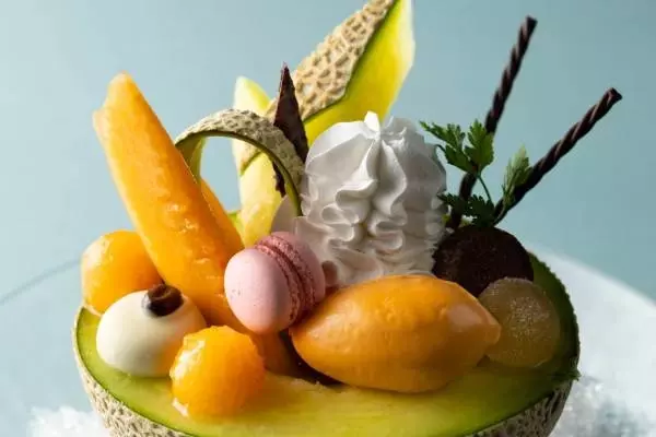 1/2個のマスクメロンを器にした贅沢パフェ「マスクメロンパフェ」東京ステーションホテルから