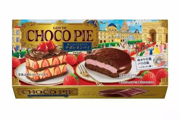 ロッテのロングセラー菓子「チョコパイ」が、偉人たちのゆかりの地をテーマに、チョコパイ独自の味わいでご当地スイーツを表現する新シリーズ。第1弾の“モーツァルトの世界観”を表現した「チョコパイ<ザッハトルテ~チョコパイと奏でるハーモニー~>」に続く第2弾は、ナポレオンをイメージ。