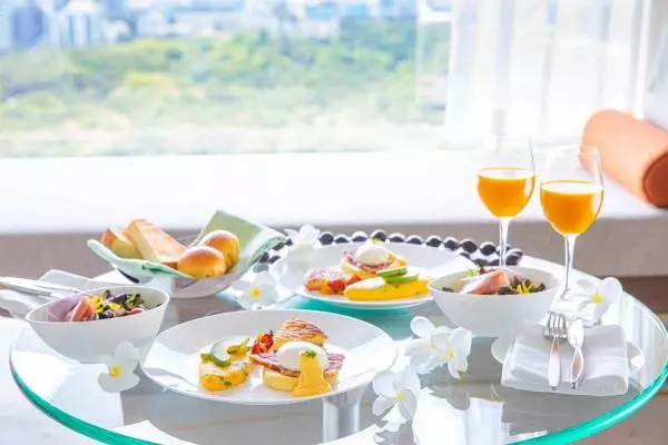 目玉となるのは、バーチャル海外旅行が体験できる宿泊プラン。“ピンクパレス”の名物レストラン「アズーア(Azure)」のヘッドシェフ監修のスペシャルディナーや、インルームで味わう朝食・エッグベネディクトが付いた特別なラインナップだ。
