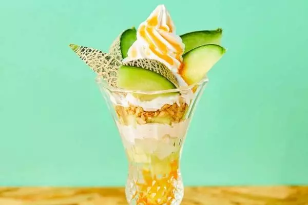 「JA庄内みどり こだわりのアンデスメロンパフェ」は、山形の庄内砂丘で太陽の光をたっぷり浴びた「アンデス」をふんだんに使用したパフェ。メロンのスライスや、ゴロゴロとした果肉をたっぷりと飾り付けてあり、メロンの甘みを堪能できる1品だ。