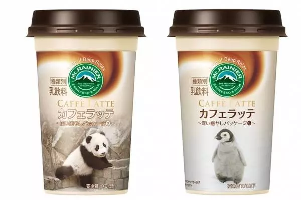 人気カフェラテ「マウントレーニア」にパンダ&ペンギンの赤ちゃん柄、アドベンチャーワールドとコラボ