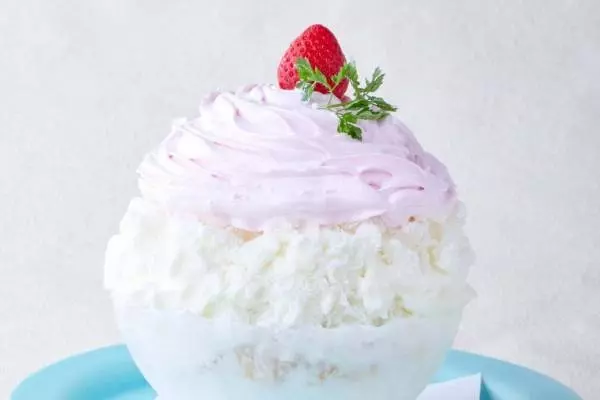 「まるでケーキ!?ふわふわミルクのくちどけかき氷」が、大阪・スカイダイニング&バー ブルーバード 梅田店で2021年7月19日(月)から8月31日(火)まで販売される。