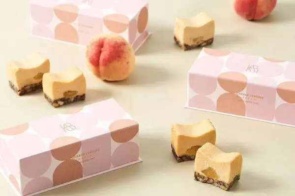 焼きたてチーズタルト専門店「ベイクチーズタルト」のサブブランドとして誕生した、チーズテリーヌの専門店「ザ チーズテリーヌ バイ ベイクチーズタルト」。今回はブランド初のフレーバー商品として、旬の桃を使った香り豊かなチーズテリーヌがラインナップに加わる。