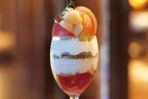 中でも特に注目したいのは、桃を丸ごと一つ使った「桃と和紅茶香るパフェ」。フレッシュな桃の果肉だけではなく、定番のコンポートやシャーベット、ムースにアレンジして重ねることで、その魅力を存分に引き出した新作パフェだ。