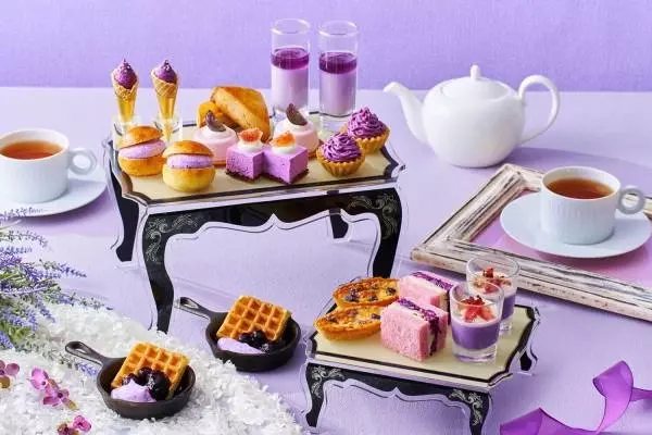 バイオレットカラーに統一した多彩なスイーツ&セイボリー