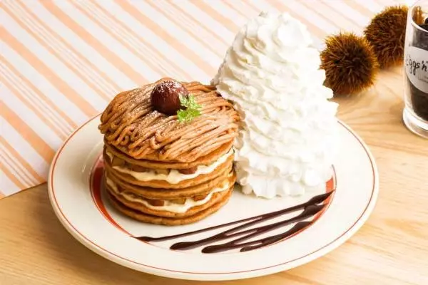 エッグスンシングス“コナコーヒー&モンブラン”の秋限定パンケーキ、栗&コーヒークリーム入り