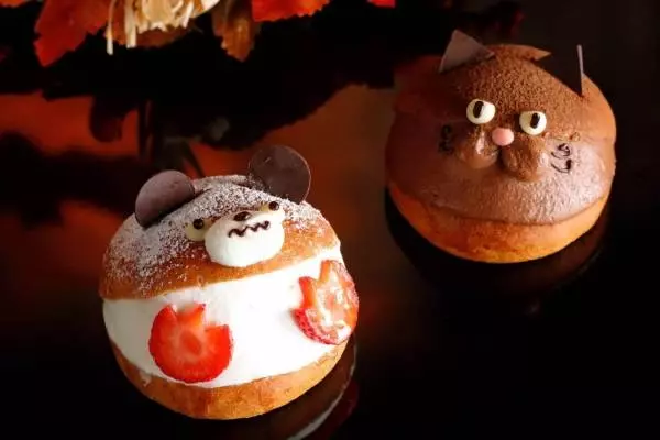 中でも注目したいのは、「くまリトッツォ」&「黒ネコのマリトッツォ」。「くまリトッツォ」は、生クリームをたっぷり詰めたマリトッツォに、チョコレートで作った耳やキュートな足型のいちごをトッピング。一方「黒ネコのマリトッツォ」は、濃厚なチョコレートクリームをサンドしたマリトッツォにチョコレートの耳や目を飾り、愛らしい“黒ネコ”を表現した。