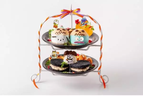 後期は、ハンギョドンとポチャッコのマリトッツォや、けろけろけろっぴのドーナツ、タキシードサムのオレンジゼリー、バッドばつ丸のツナサンド、あひるのペックルのキッシュを味わえるハロウィン仕様のアフタヌーンティー「Trick or Treat!みんなで変~身!ハロウィンパーティセット」を提供する。