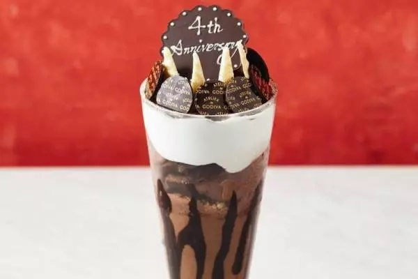 ゴディバ(GODIVA)のコンセプトストア「アトリエ ドゥ ゴディバ」の第1号店・アトリエ ドゥ ゴディバ 西武池袋本店より、同店のオープン4周年を記念したアニバーサリースイーツ「ショコラ パルフェ 西武池袋本店4周年記念」が登場。2021年9月5日(日)より提供がスタートする。