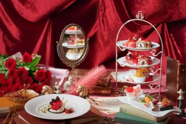 「アリスとハートの女王のレッドアフタヌーンティー」東京・横浜・埼玉で、赤いジュレやいばらのマカロン