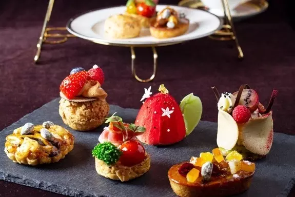 自分好みのアフタヌーンティーをセッティング出来るよう、常時バリエーション豊富なラインナップを展開。シーズンごとに異なる季節のフルーツを使った8種類のプチケーキ、風味豊かなフィナンシェやクッキーなどの焼き菓子、アフタヌーンティーに欠かせないスコーン、口直しやアペリティフに最適なセイボリーなど、多彩なメニューが楽しめる。