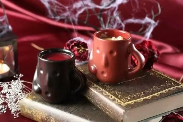 ハロウィン限定、2色の“はにわ”マグカップにも注目。ダークな印象のブラックと、赤土による新色ワインレッドのマグカップを手に入れることが可能だ。食べ終わった後も、ハロウィン気分を盛り上げるインテリアオブジェとして活躍してくれそう。