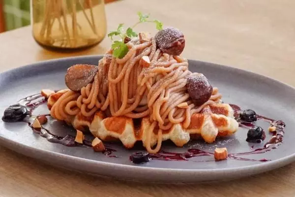ロクシタン表参道店 ヴァーベナカフェ次世代スイーツのクロワッサンワッフルをモンブラン風に