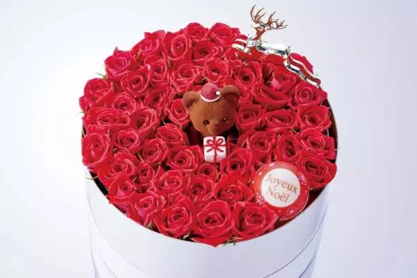 ルワンジュ東京のクリスマス2021、テディベアを花束で囲んだチーズケーキ&スノードームケーキなど