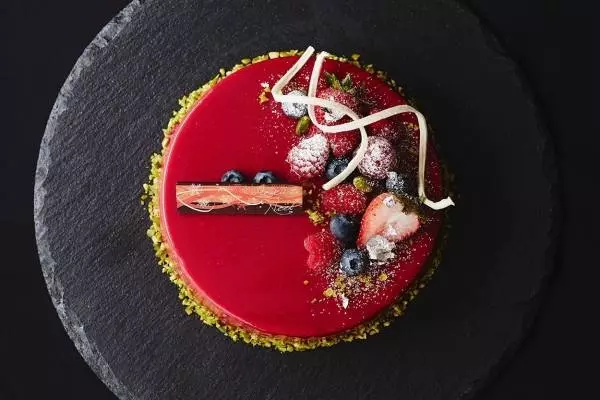 「モンド ダルジャン(Monde d’Argent)」と名付けられたケーキは、雪が降り積もる“銀世界”をイメージした純白の苺ショートケーキ。表面は「クレーム・ソワニエ」を使用した生クリームで仕上げており、その真っ白で美しい見た目だけでなく、生乳本来のおいしさを存分に楽しめる。ケーキの中にしのばせた苺は、地元・京都産のものを使用している。