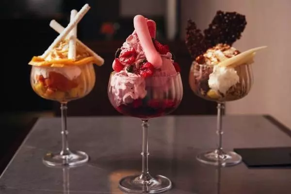 珈琲と合わせてオーダーしたいのが、エグゼクティブパティシエ特製の「パフェ」だ。フルーツは店内でカット、調理するなどフレッシュさにこだわって仕上げた。特徴的なのは、自分好みに“味変”できること。別添えでホイップクリームやフレッシュフルーツを小皿に入れて提供するので、具材を足して、自分好みの味わいにカスタマイズできる。