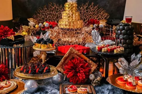 アートホテル大阪ベイタワーのクリスマスビュッフェ、“黄金郷”の金色ケーキや真っ赤なムースなど