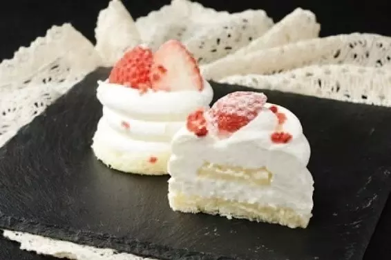 「ウチカフェスペシャリテ限定!絹白クリームの苺ショート」は、“クリーム好き”に贈るショートケーキ。スポンジよりもクリームの方が多い、まさにクリーム好きにはたまらないスイーツで、トップには甘酸っぱい苺をのせた。クリームは、北海道産牛乳を使用し、濃厚だけど後味すっきりに仕上げている。