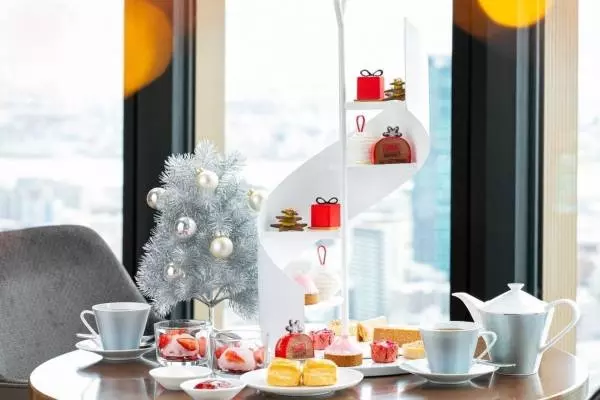 コンラッド大阪の苺アフタヌーンティー、クリスマス限定サンタ帽&ツリー型スイーツも